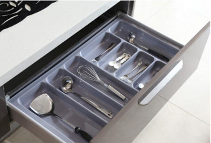 A bandeja do utensílio, com forro revolucionário do macio-aperto e projeto simples, traz a função e o estilo a toda a cozinha.